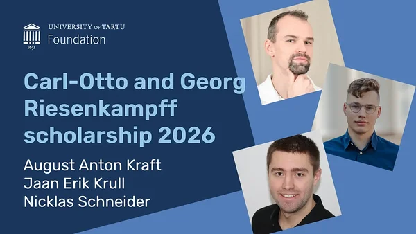 The laureates of the Carl-Otto and Georg Riesenkampff Scholarship are Anton Kraft, Jaan Erik Krull and Nicklas Schneider, master's students at the University of Tartu. The scholarship promotes student exchange between Estonia and Germany by supporting students in the fields of economics, technology and culture.